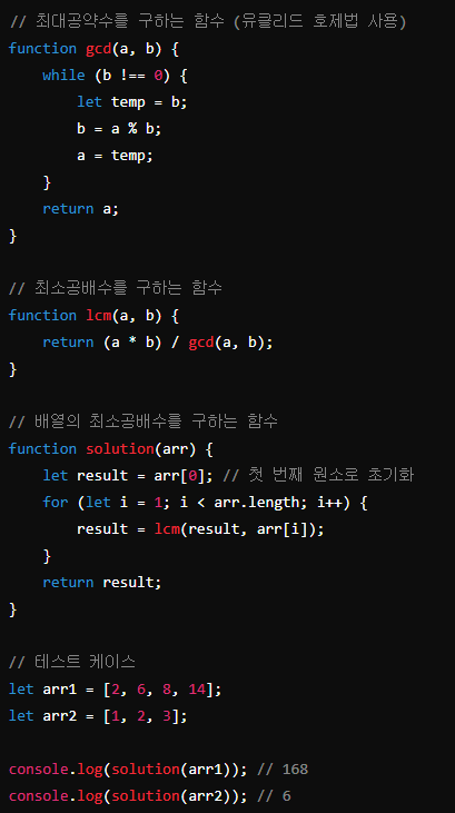 - 루프가 끝나면 result에는 배열 전체의 최소공배수가 저장됩니다.