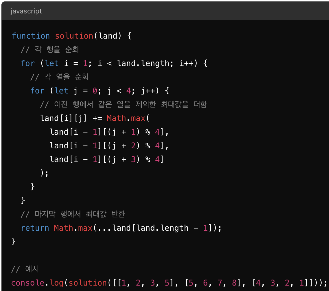 - 마지막 행에서 최대값을 찾아 반환합니다.